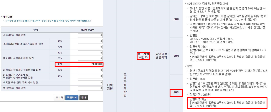 저희는 중소기업 취업자에 대한 감면 90% 부분에 총급여액을 입력해주시면 됩니다.