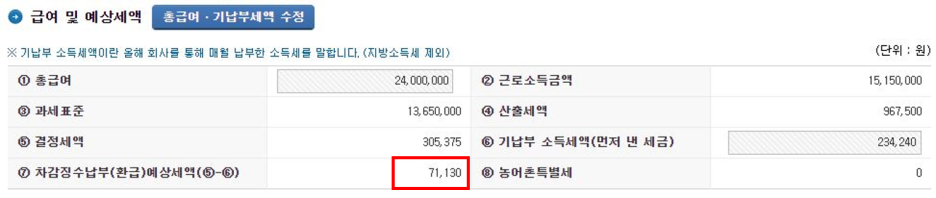 이 결과 마이너스 금액이 나와야 환급입니다!